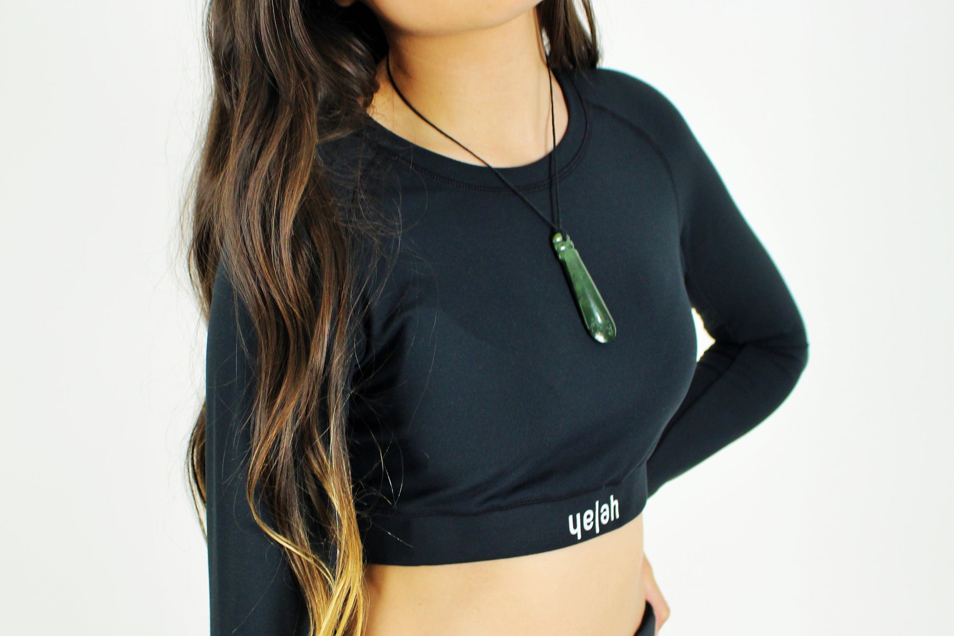 This stylish long sleeve crop is made for comfort while you workout or for leisure.