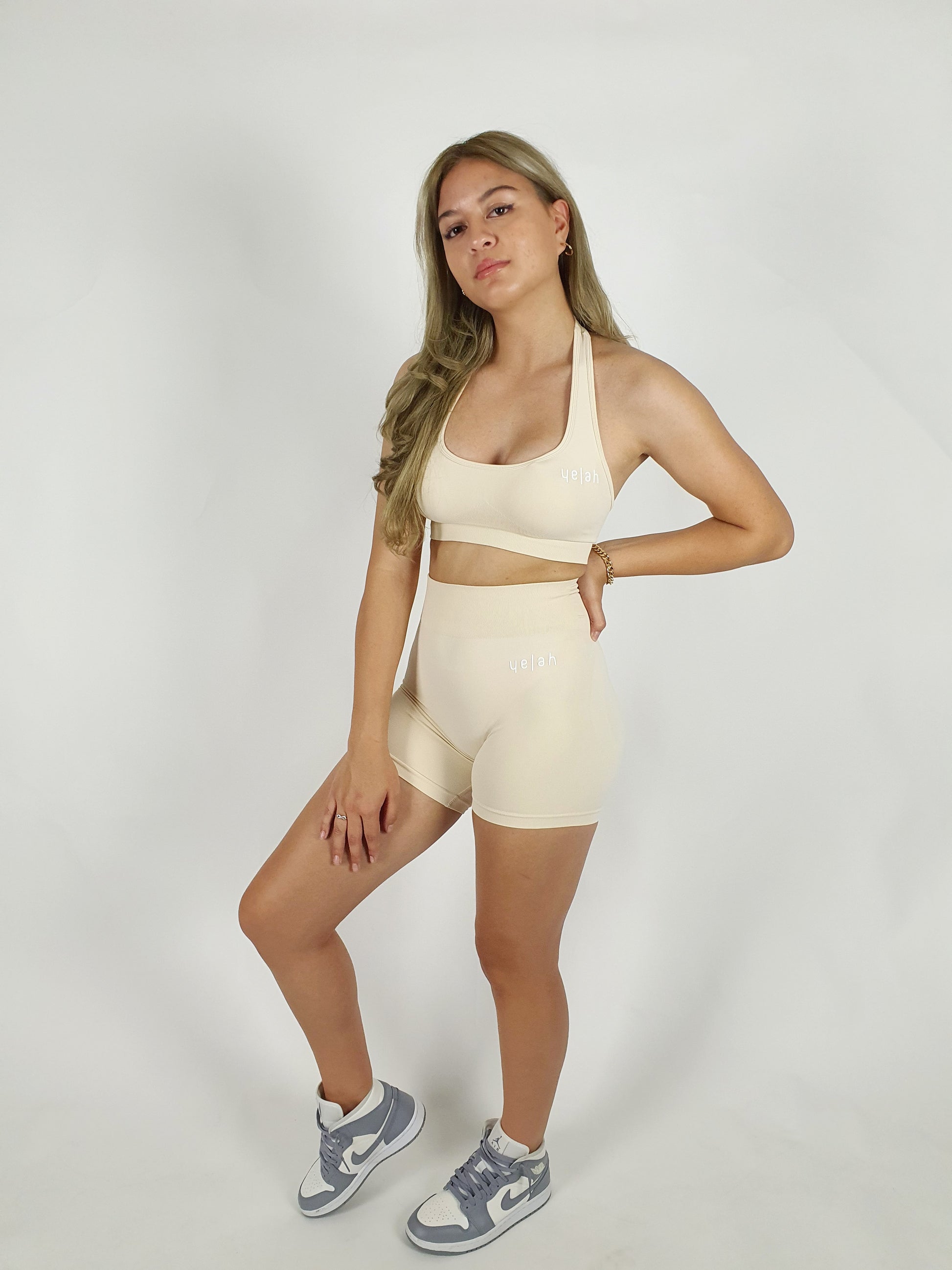 High Waisted Seamless Mini Shorts - Beige