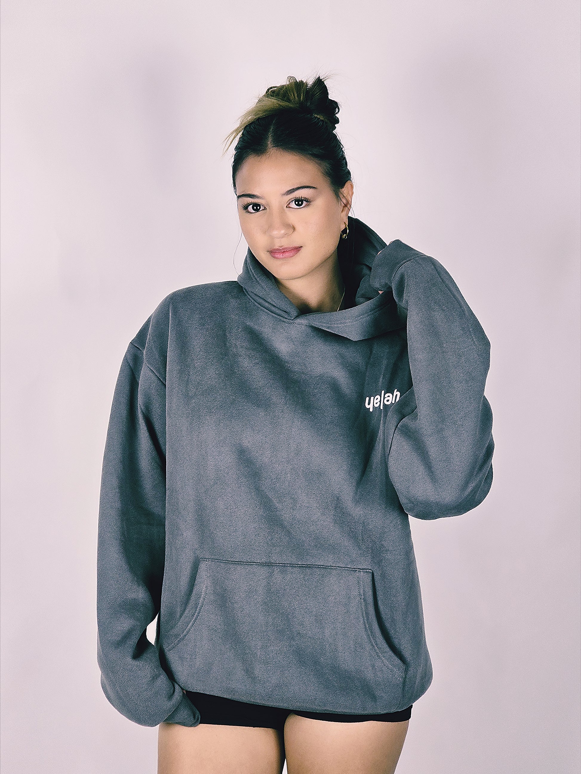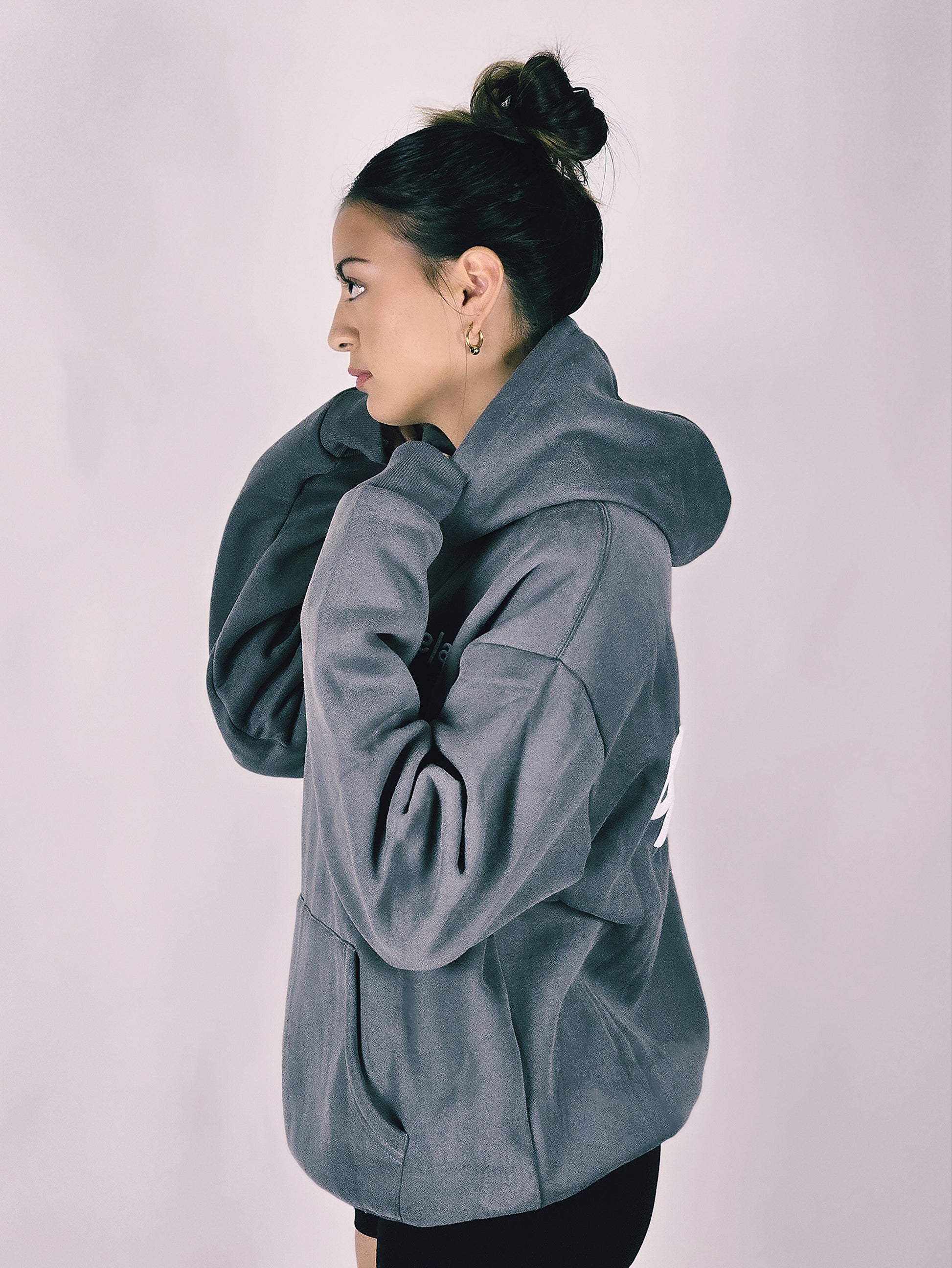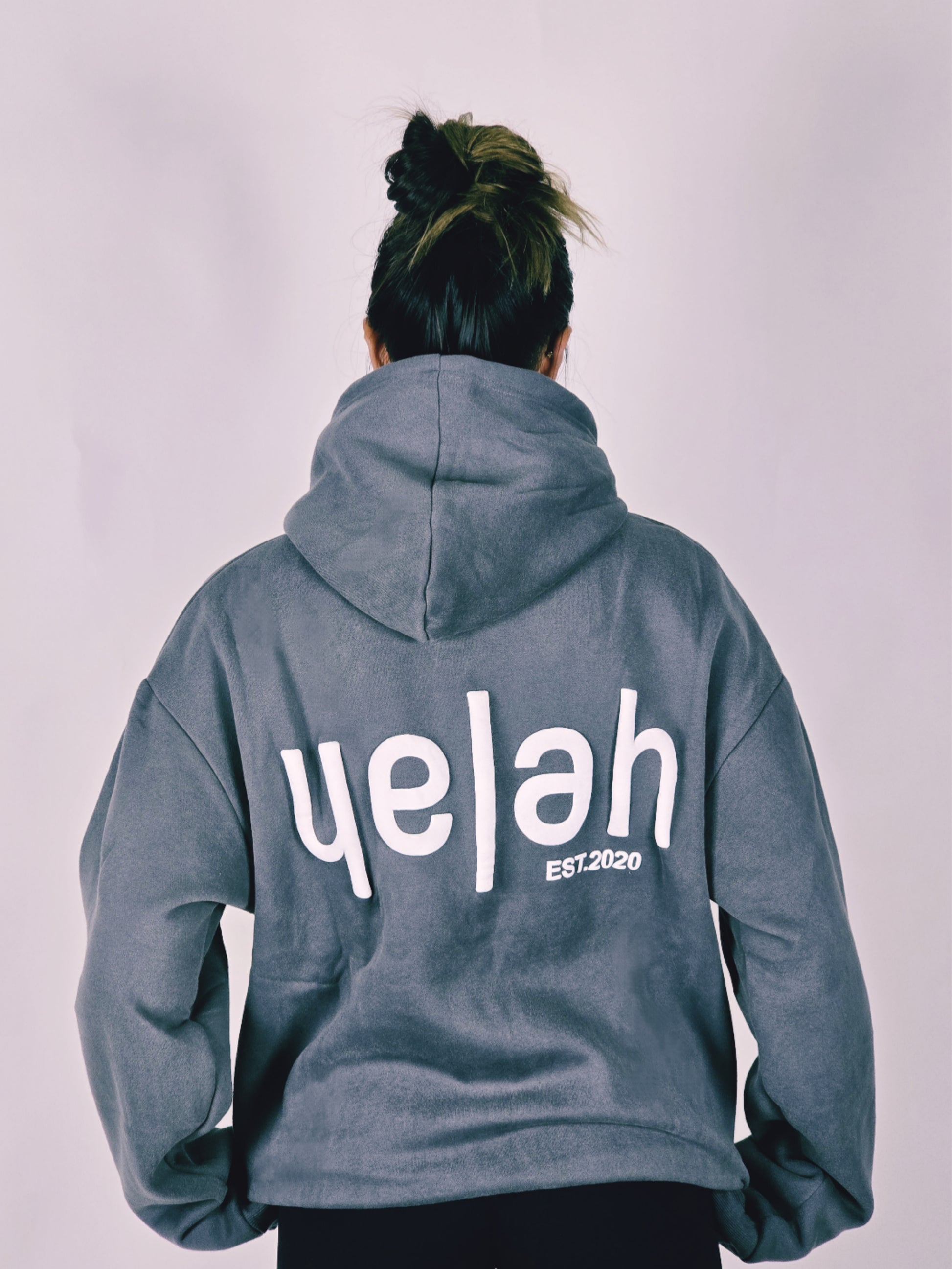 Update your Loungewear Wardrobe with the Yelah Hoodie in Charcoal with White Print.