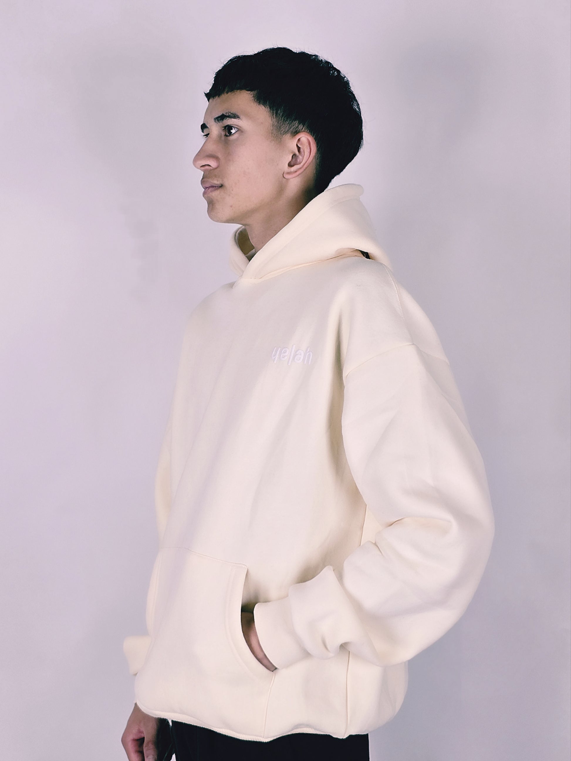 Update your Loungewear Wardrobe with the Yelah Hoodie in Cream with White Print.