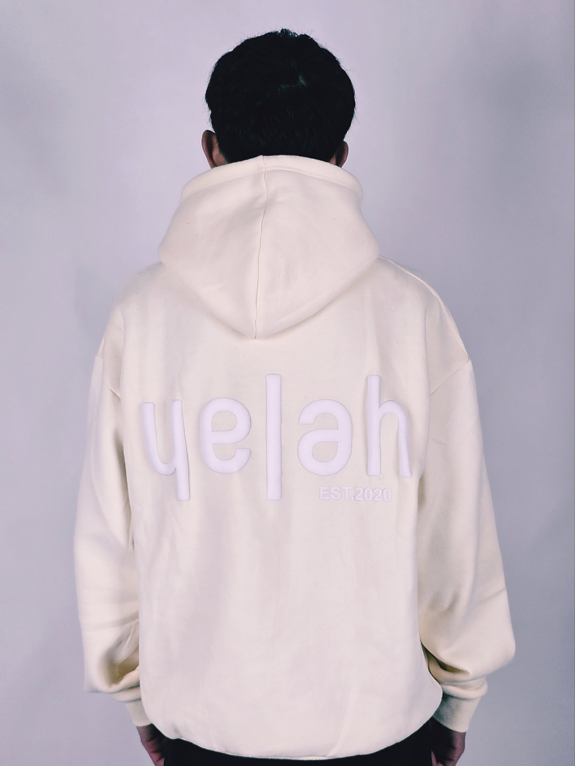 Yelah Puff Print Hoodie in Cream